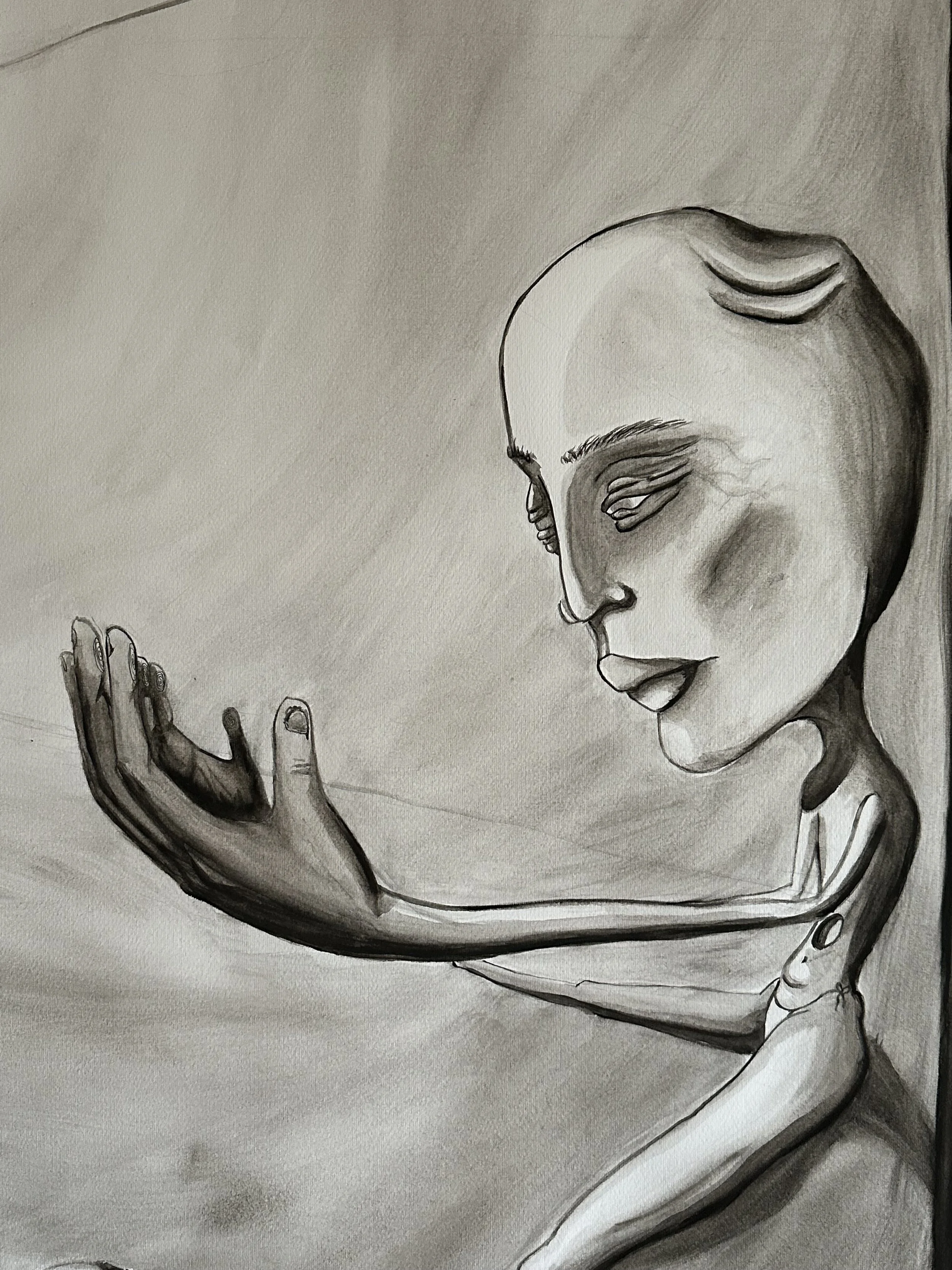 Ada's art catalyses openness and dialogue about human existence and self-understanding. Her skilful use of traditional techniques, such as acrylic paints and pen & pencil on paper, maintains the authenticity of her emotions. Her work is a testament to her dedication to capturing the essence of human experience, making her a profound and impactful voice in contemporary art.